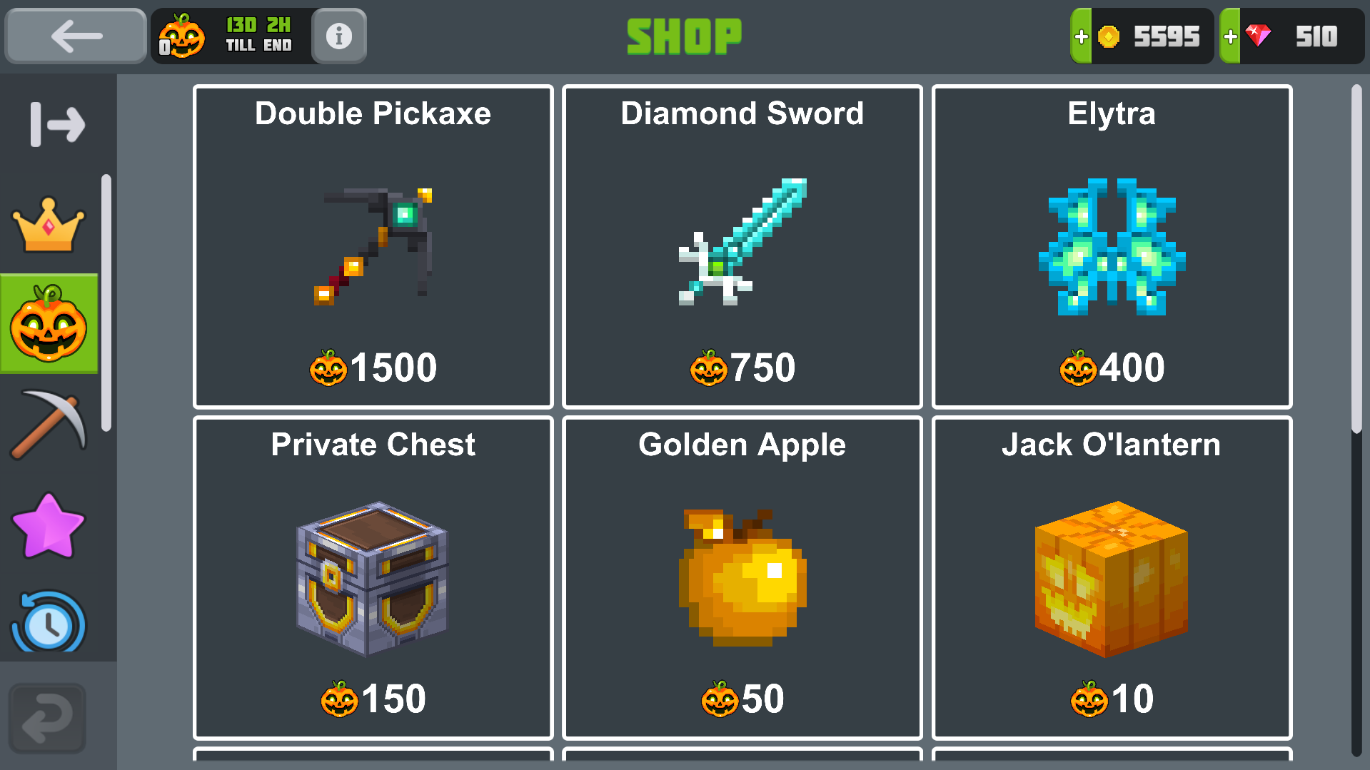 We are launching a Halloween event! As usual, explore the world for event blocks, break them and exchange even tokens for prizes!