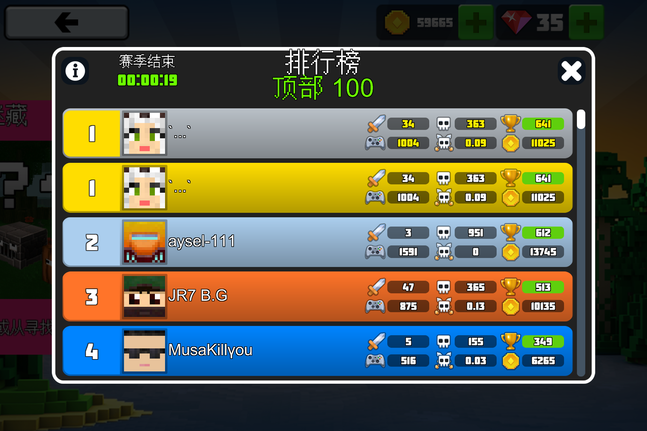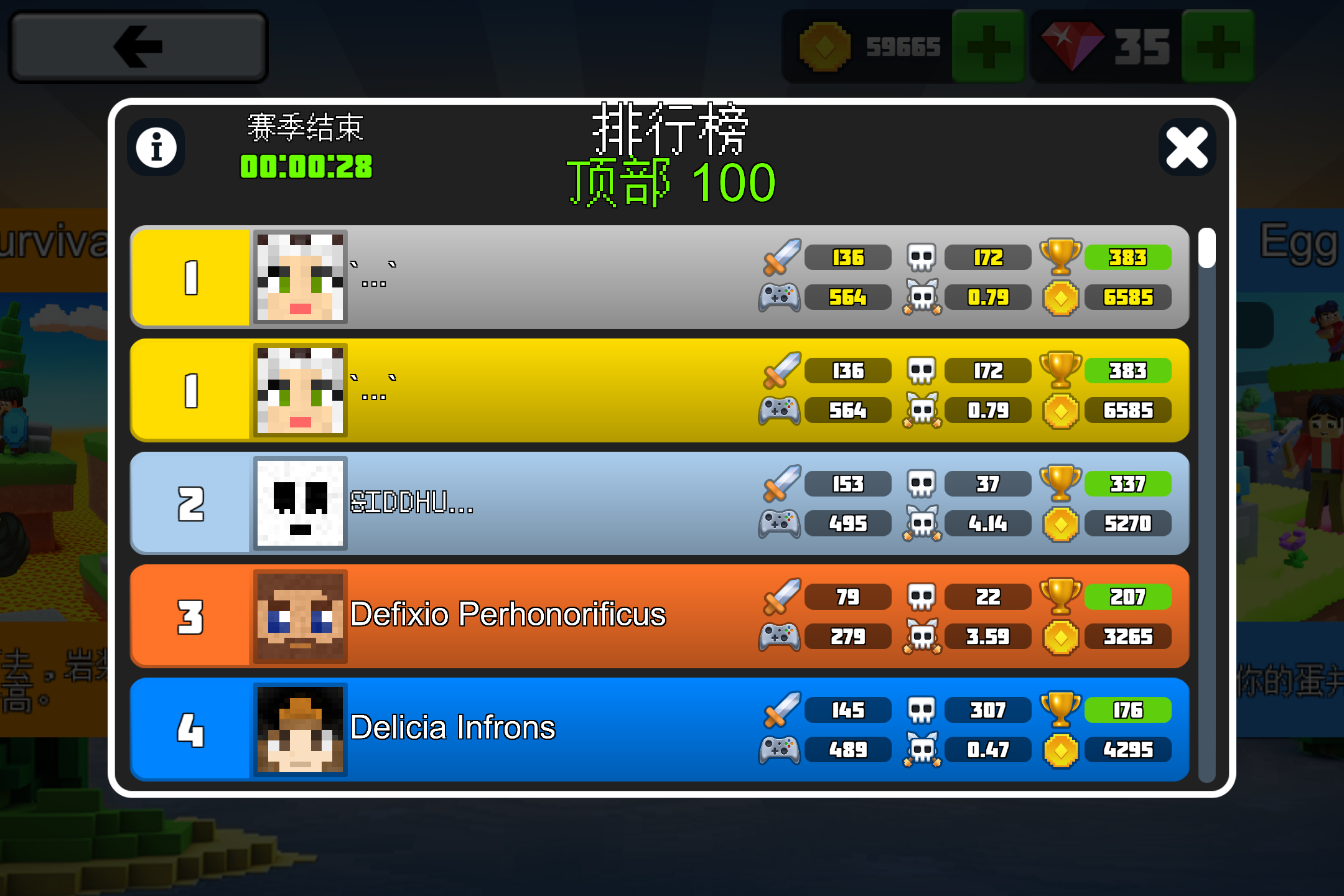 The mini-game season ended, and I won the leaderboard championships for both Spleef and TNT Run, and also bought a new diamond armor skin.