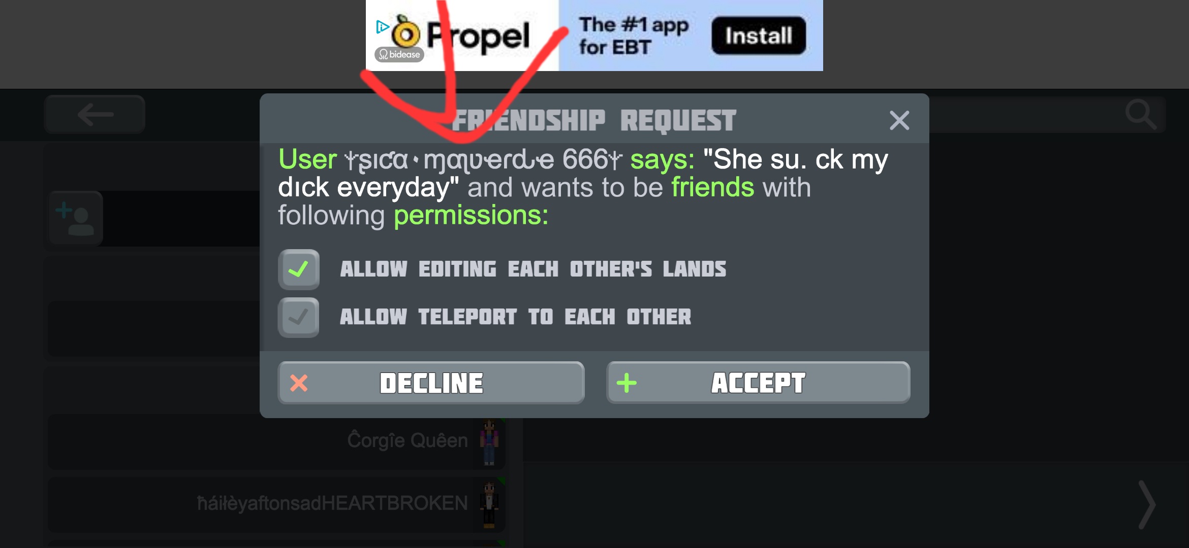 Hey, this person friended me saying a nasty reply about his gf, what he said was very nasty can you please ban him. Things are happening even more on planet craft and discord, so can you please ban him i have screenshots of what he said.