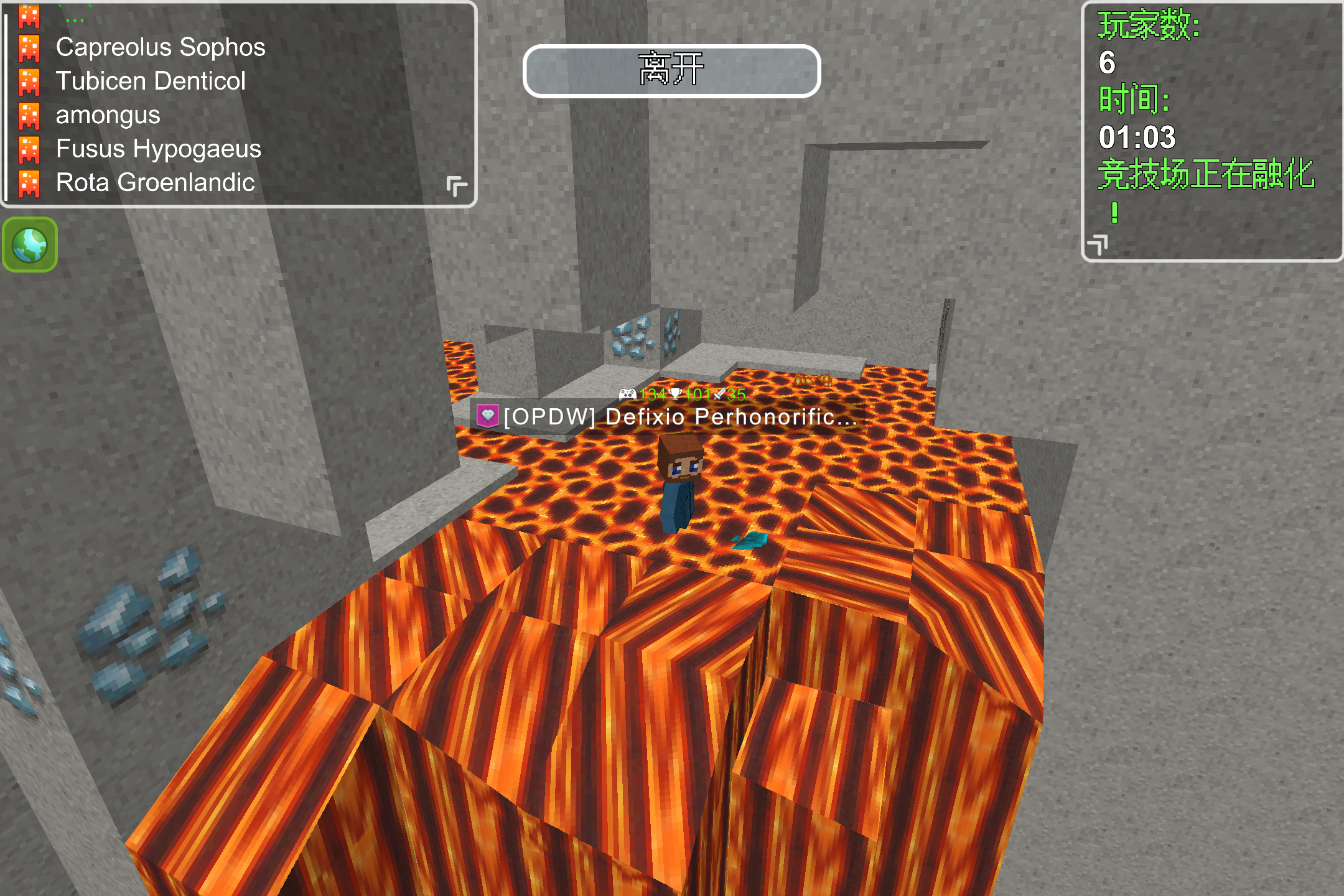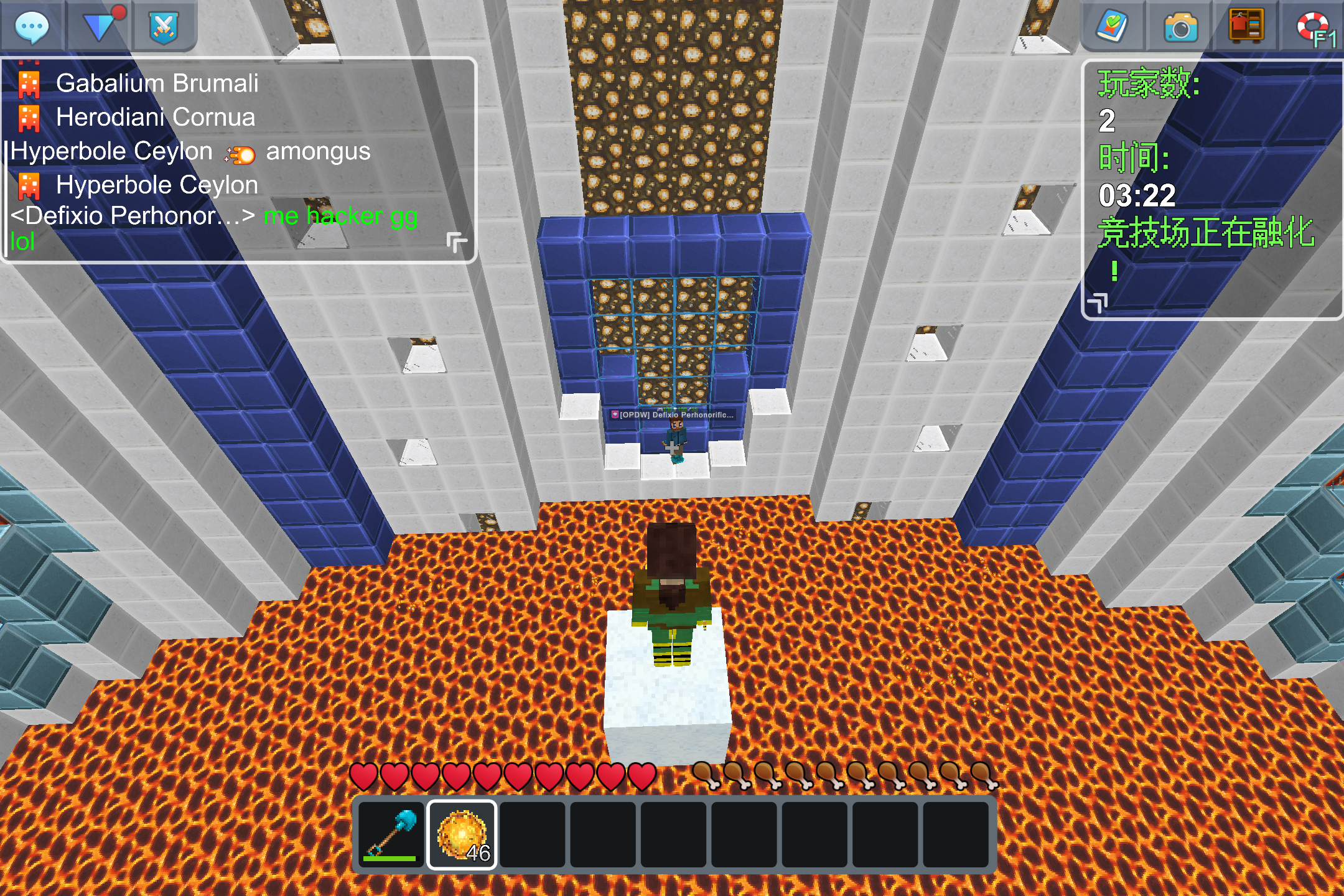 I found a rampant hacker in Spleef. I tracked him in spectator mode and discovered his ability to be immune to fire. I noticed that at the start of the game, he went to a place with a lavafall, jumped in, and then swam to a hole next to the Spleef arena. He was active multiple times in Spleef, often typing 'me hacker gg lol' during the game.