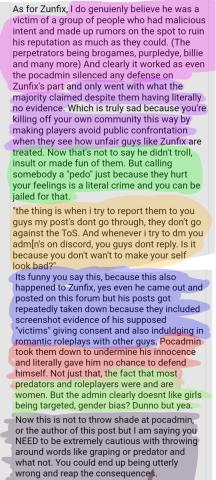 Here is the thing, this bit "Now this is not to throw shade at pocadmin, or the author of this post but I am saying you NEED to be extremely cautious with throwing around words like graping or predator and what not. You could end up being utterly wrong and reap the consequences." I assume this is for other people who are falsely accused like glitchboo or many others, but we are right about zunfix.